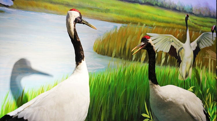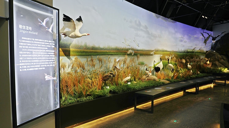 生命之源-江河行地-图们江 :真实场景还原水中生态环境,陈列关于图们江内水生鱼类与植物的相关标本等,通过水波纹投影增强江水实景效果, 沉浸式参观了解图们江流域生态系统。